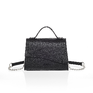 BANDOLERA YANIN. MANIJA CORTA Y CORREA CON CADENA . TEJIDO SIMIL CUERO GRANEADO.