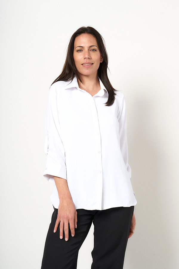 CAMISA OLIMPIA. CLASICA, CON CUELLO SOLAPA Y MANGA 3/4 CON TIRA PARA ATAR. TEJIDO CEY SATEN LISO.