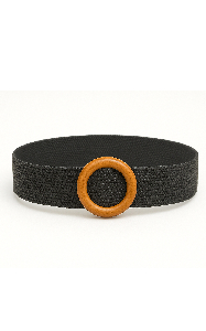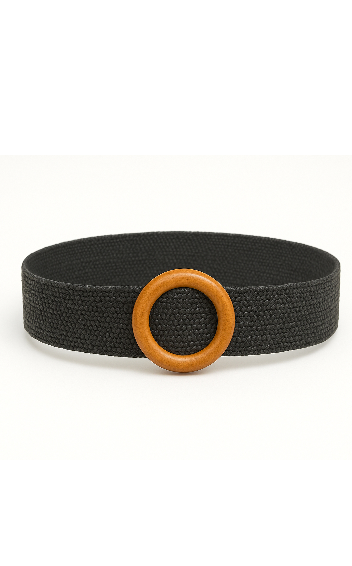 CINTO INDIA. TEJIDO RUSTICO ELASTIZADO, DETALLE HEBILLA REDONDA DE MADERA.