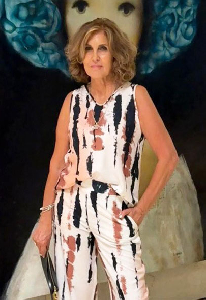 MUSCULOSA NAIARA. ESCOTE V CON DETALLE TERMINACION SIMIL EVASE. TEJIDO CREPE ESTAMPADO MANCHAS ESFUMADO.