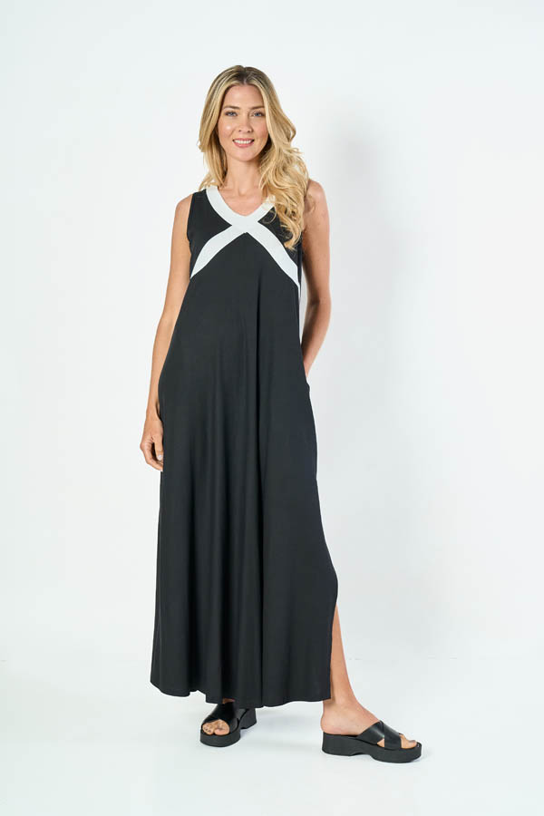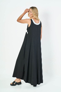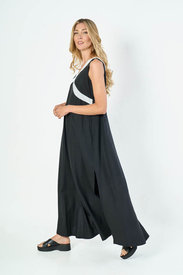 Vestido Milagro, largo y fluido, de tejido liviano que aporta movimiento. Con detalles delicados y una silueta que sigue la figura, es perfecto para un look romántico y sofisticado.