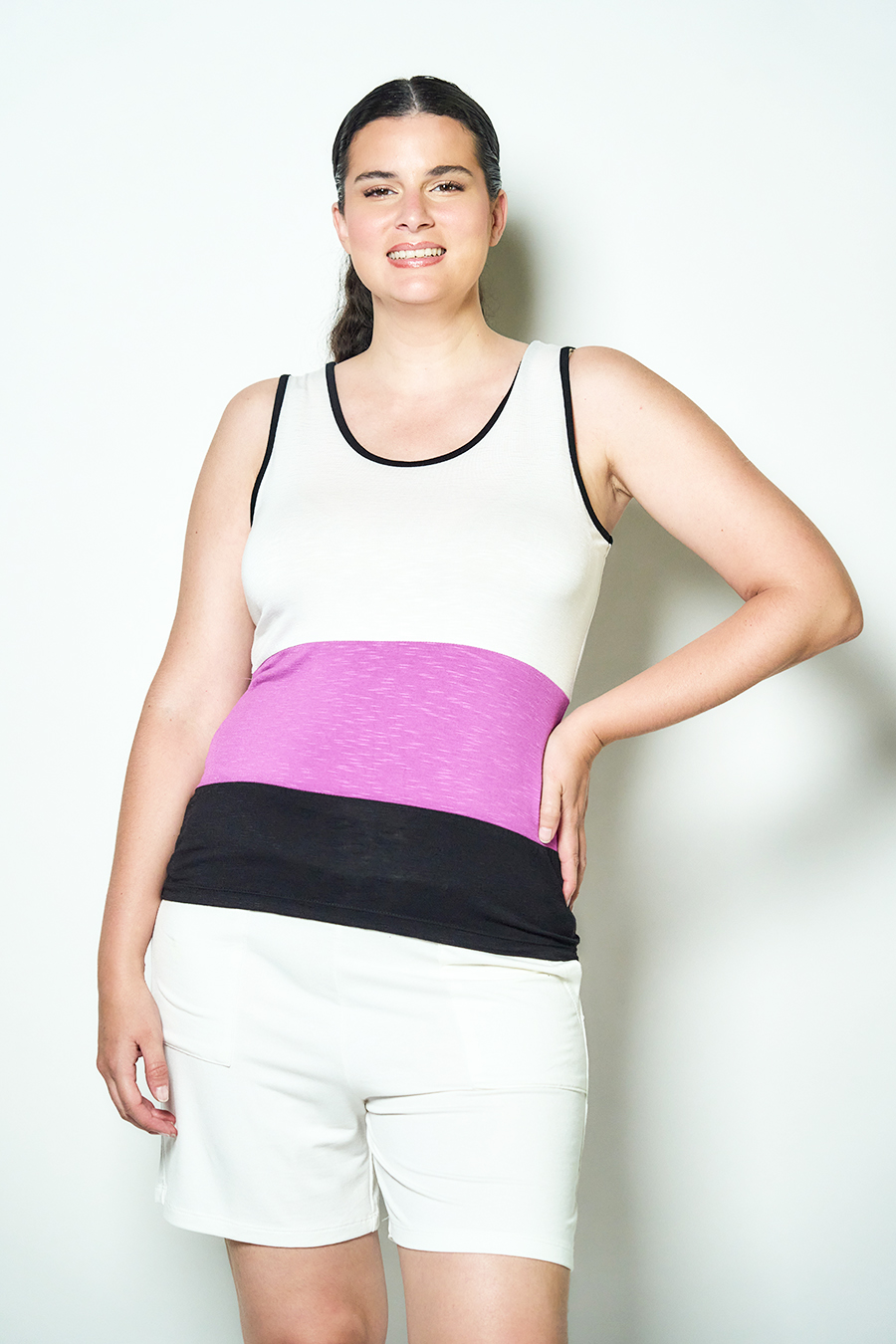 MUSCULOSA CANATA. ESCOTE U CON VIVO CONTRATONO, TERMINACION EVASE. TEJIDO MODAL FLAME TRICOLOR.