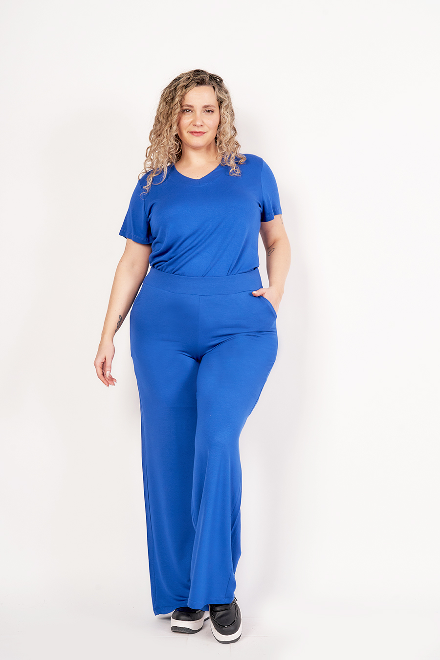 PANTALON PALAZZO MISSOURI. CINTURA CON ELASTICO Y BOLSILLOS LATERALES. TEJIDO RUSTICO CON LYCRA LISO.