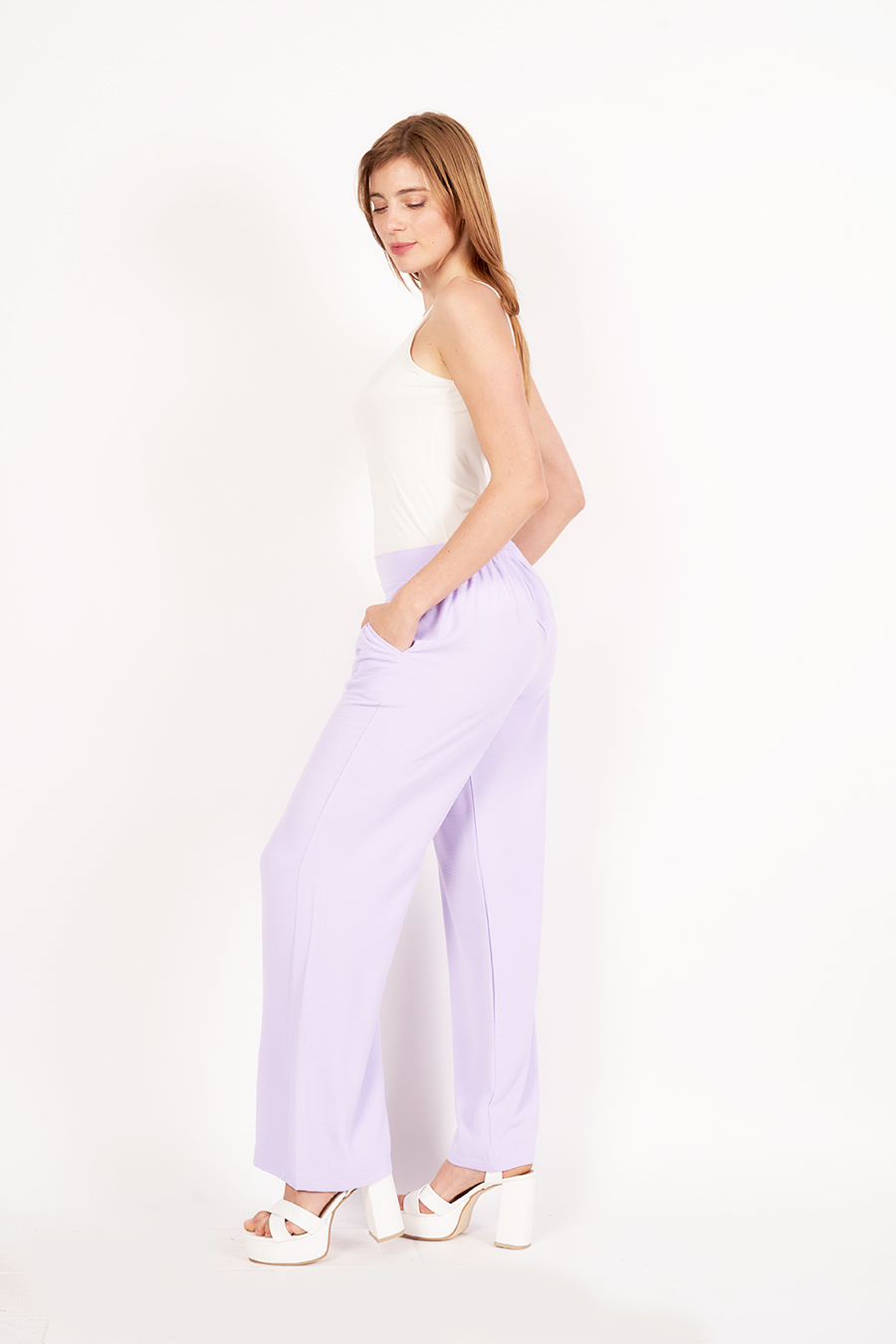 PANTALON PALAZZO CIELO. CINTURA CON ELASTICO TRASERO Y BOLSILLOS LATERALES. TEJIDO LINO LOTUS LISO.