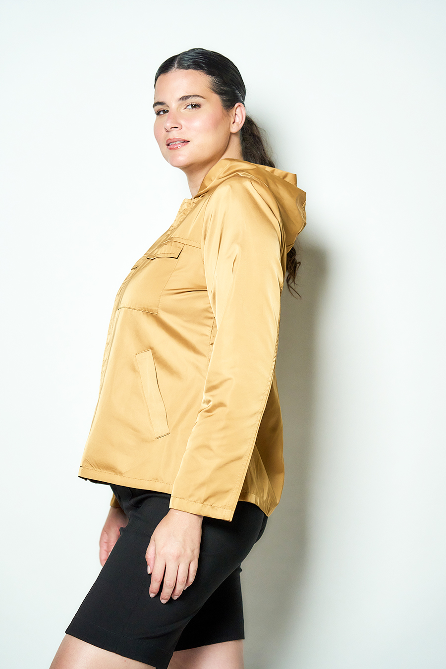 CAMPERA MORA. CON CAPUCHA, DETALLE FRENTE CON DOS BOLSILLOS TAPITA Y DOS BOLSILLOS DIAGONALES. TEJIDO PILOTERO LISO.
