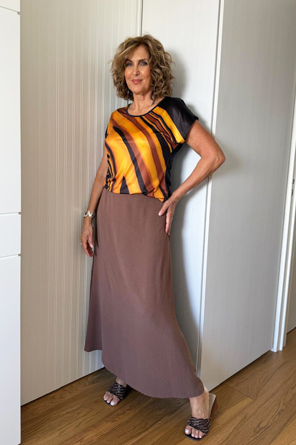 POLLERA MARGARET LARGA. CINTURA CON ELASTICO Y BOLSILLOS LATERALES. TEJIDO KENIA LISO.