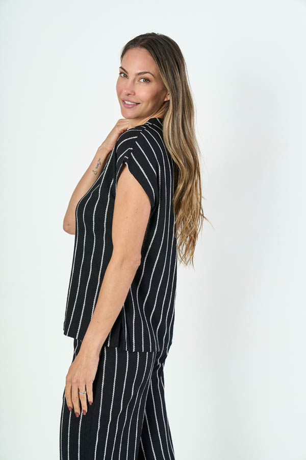 BLUSA CONSUELO. CUELLO MANGA Y MANGA JAPONESA. TEJIDO RAYADO.