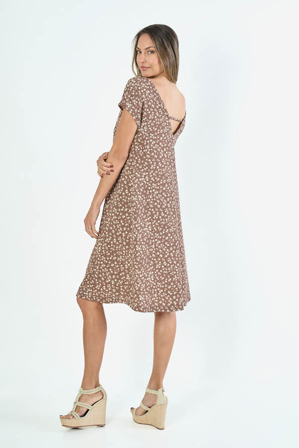 VESTIDO JULIETA. ESCOTE V Y MANGA JAPONESA, DETALLE ESPALDA EN V CON TIRITA. TEJIDO LIBERTY ESTAMPADO FLORCITAS.