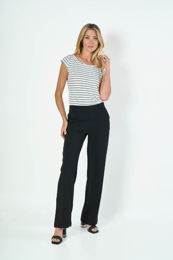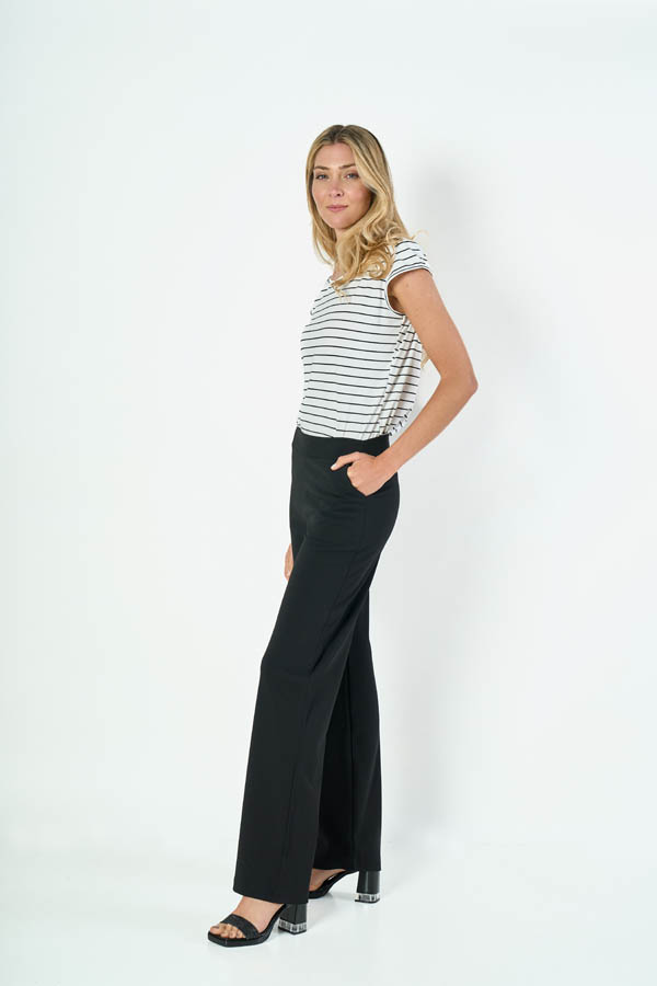 PANTALON LUANA. CINTURA CON CADERIN Y BOLSILLOS DIAGONALES. TEJIDO SCUBA CREPE LISO.