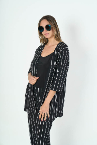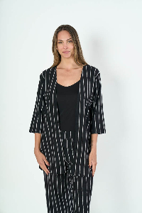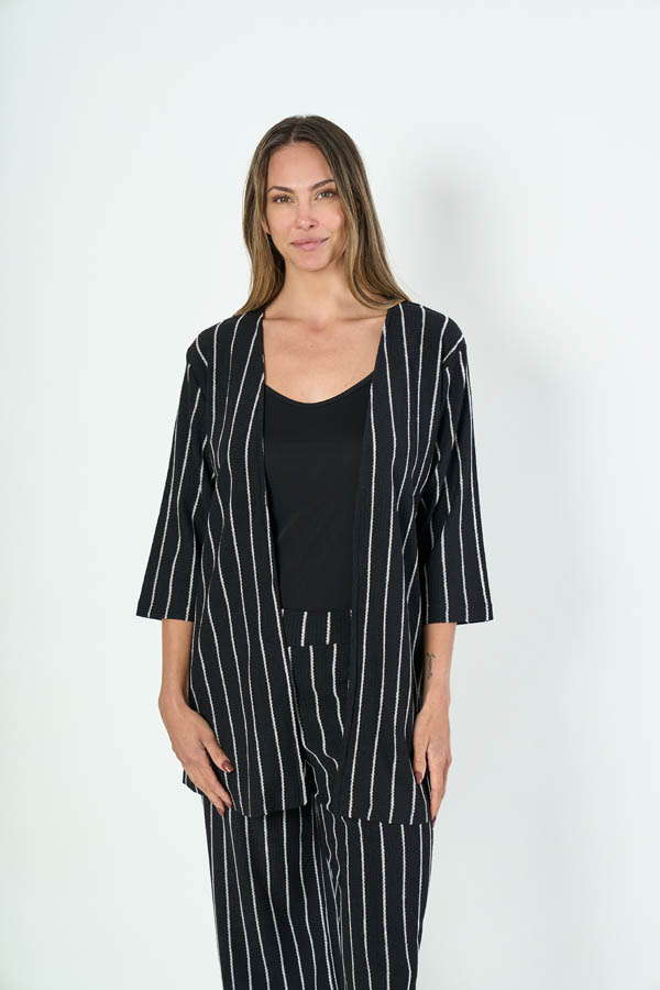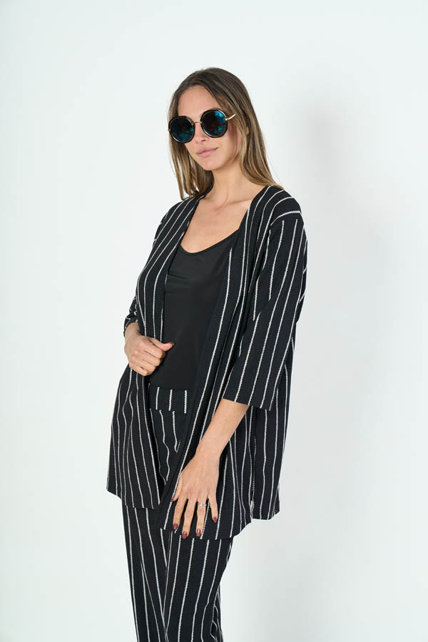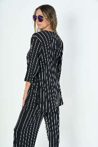 SPOLVERINO TAMARA. ESCOTE U Y MANGA 3/4, DETALLE TERMINACION TAJITOS A LOS COSTADOS. TEJIDO RAYADO.