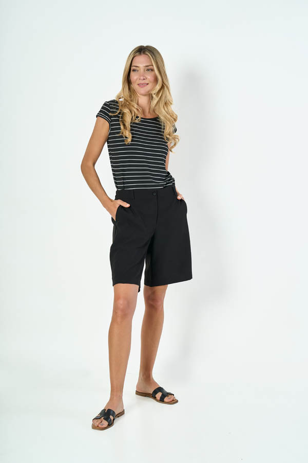 BERMUDA ODILIA. CINTURA CON PRESILLAS Y ELASTICO TRASERO, DETALLE BOLSILLOS LATERALES. TEJIDO SASTRERO ZARA Y DORMAN LISO.