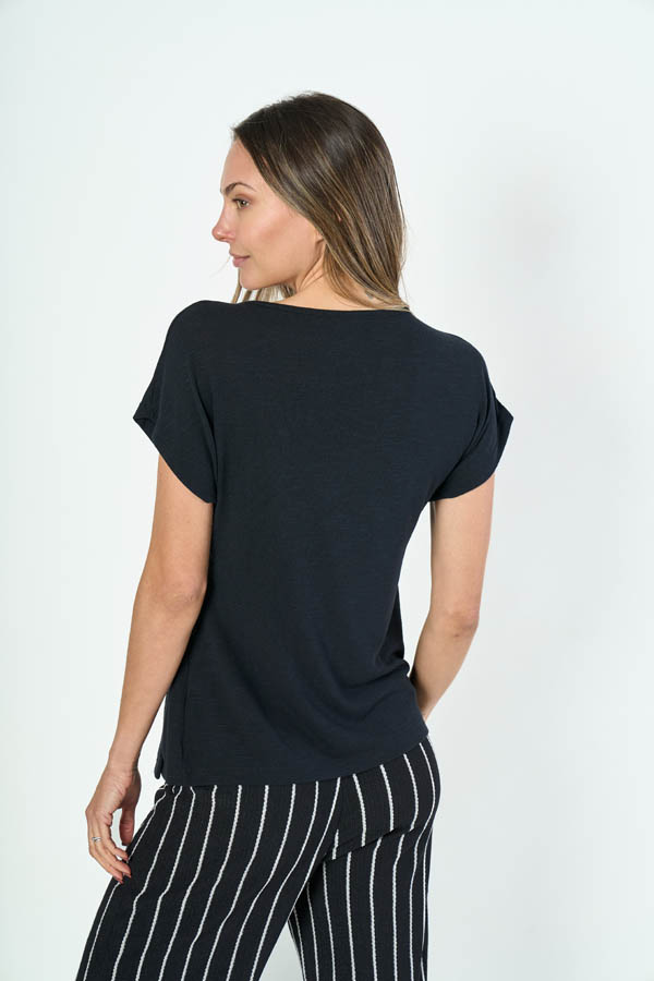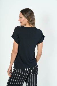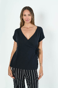 REMERA GIORGINA. ESCOTE V CRUZADO CON LAZITO PARA ATAR Y MANGA JAPONESA. TEJIDO MODAL FLAME LISO.