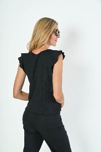 REMERA DALIA, ESCOTE BASE Y MANGA CON VOLADO. TEJIDO FANTASIA BRUSELAS LISO.