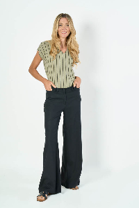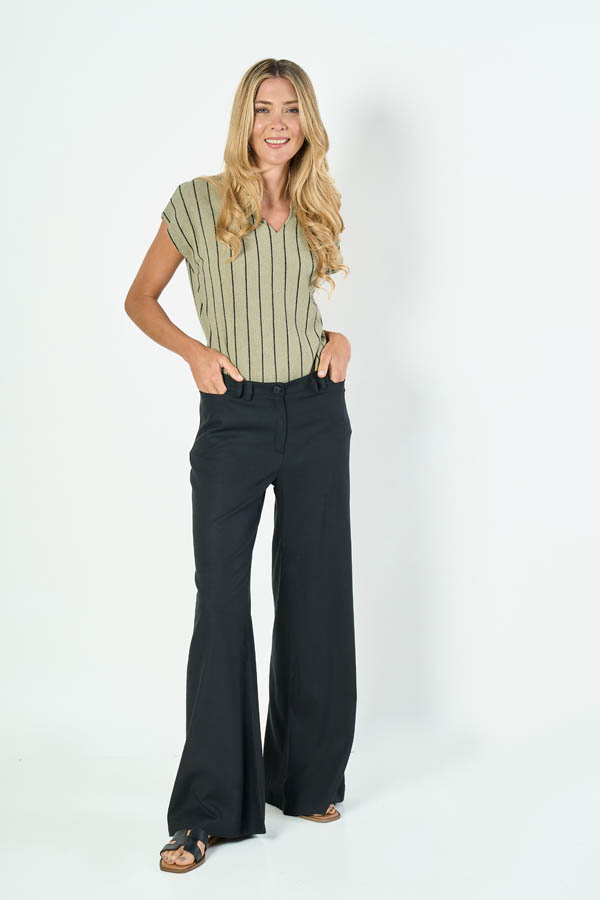 PANTALON JULIANA ANCHO. CINTURA CLASICA CON DOBLE PRESILLA. TEJIDO LINO CON SPANDEX LISO.