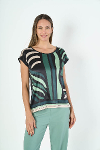 REMERA KATHERINE. ESCOTE BASE Y MANGA CAIDA, DETALLE FRENTE CON ESTAMPA. TEJIDO MICROFIBRA LISO.