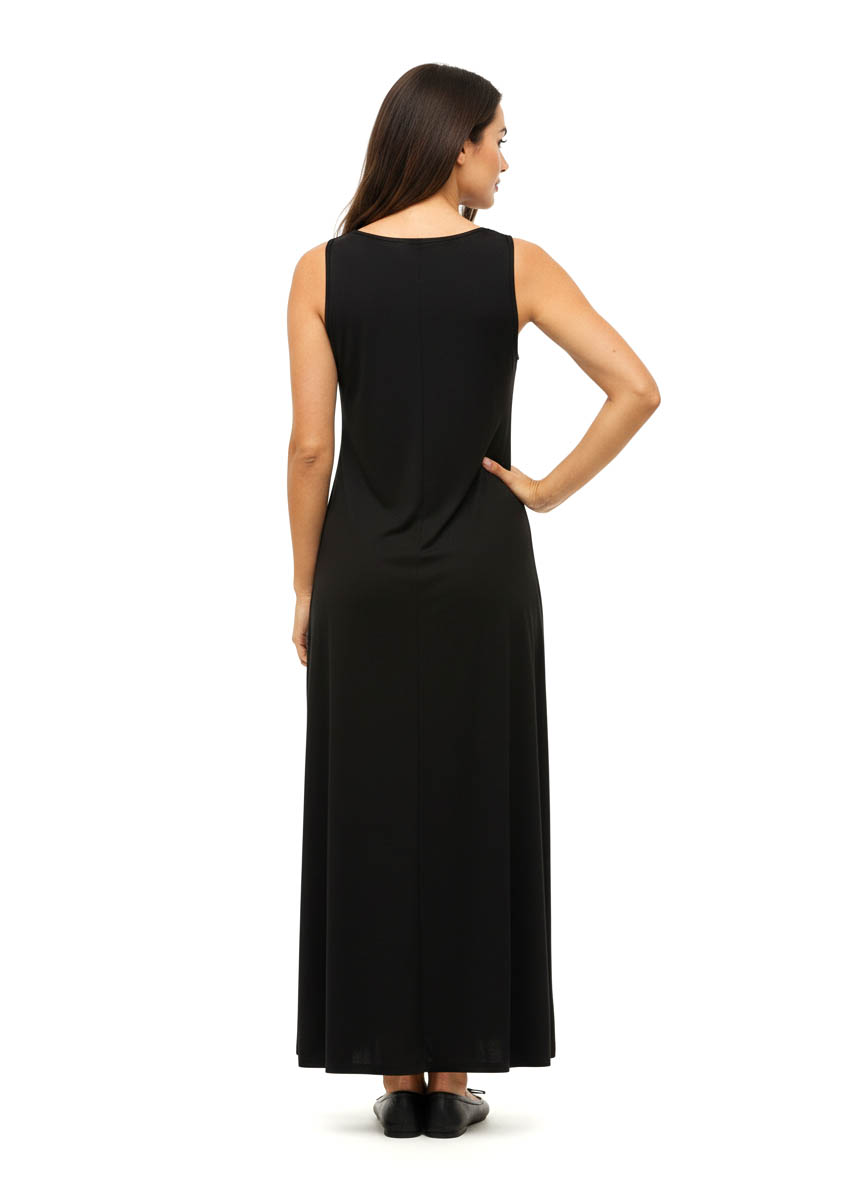 Vestido Margarita. Largo y liviano, con escote base sin mangas y estampa selvática al frente. Confeccionado en microfibra, ideal para un look fresco, moderno y con personalidad.