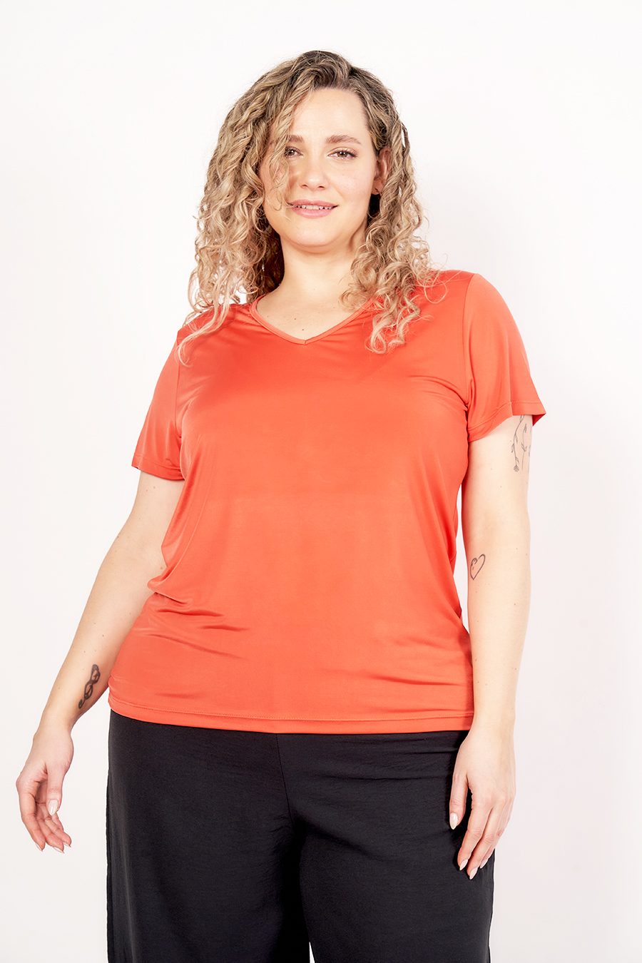34 REMERA MARISOL CLASICA. ESCOTE V Y MANGA CORTA. TEJIDO VENECIA LISO.