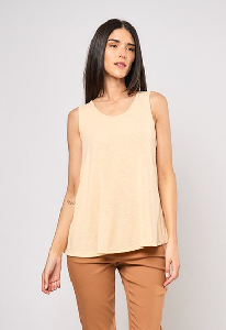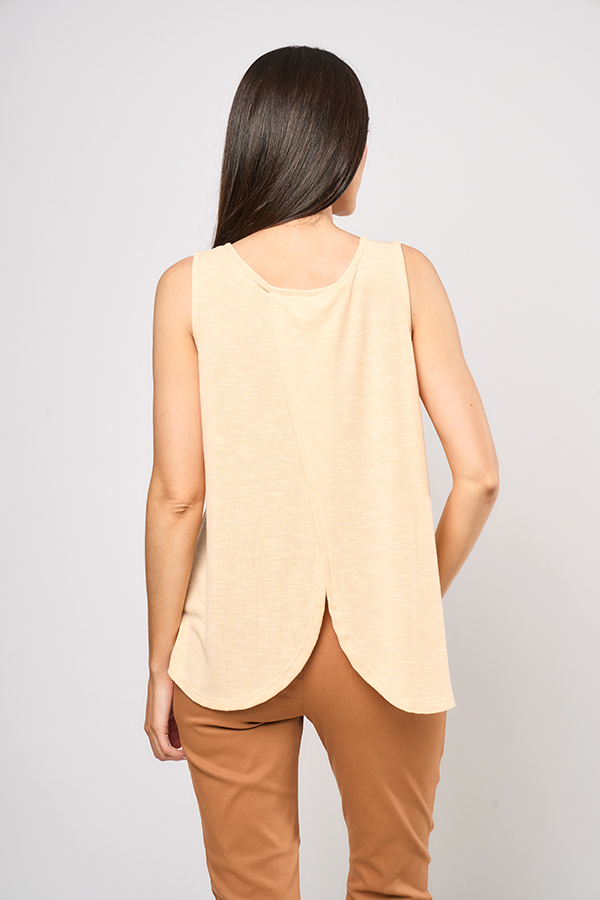 44 MUSCULOSA UMA. ESCOTE BASE, DETALLE ESPALDA MARIPOSA Y TERMINACION EVASEE. TEJIDO JERSEY FLAME ROMA LISO.