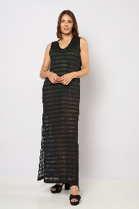 134 REMERA PLAYERA DONATELLA. ESCOTE V, SIN MANGAS. DETALLE TERMINACION CON TAJITOS A LOS COSTADOS. TEJIDO ENCAJE DESAHUJADO.