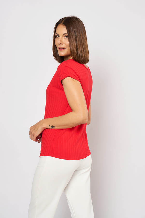 94 REMERA GALILEA. ESCOTE V INCRUSTADO Y MANGA JAPONESA. TEJIDO MORLEY CRETA LISO.