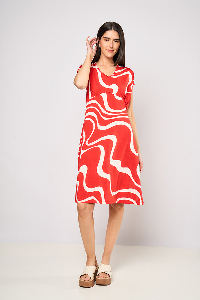 35 VESTIDO GWEN. ESCOTE V Y BUSTIER CON RECORTE DRAPEADO, MANGA JAPONESA. ESPALDA CON TIRAS ENTRECRUZADAS. VENECIA ESTAMPADO ONDAS.
