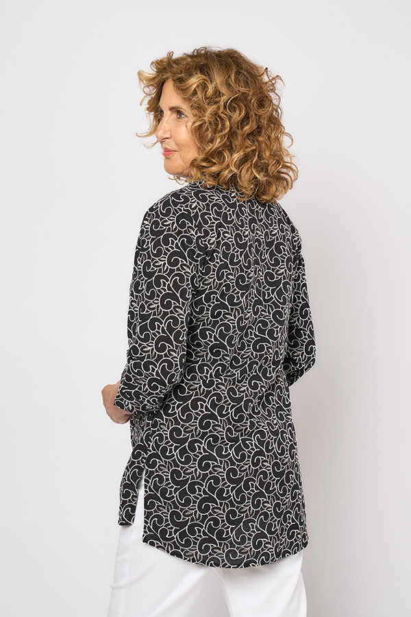 48 CAMISOLA EVA. CUELLO SOLAPA Y MANGA 3/4, DETALLE BORDADO CON LUREX. TEJIDO BRODERIE COTTON LISO.