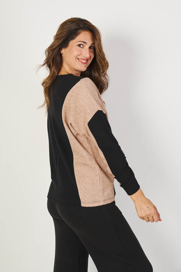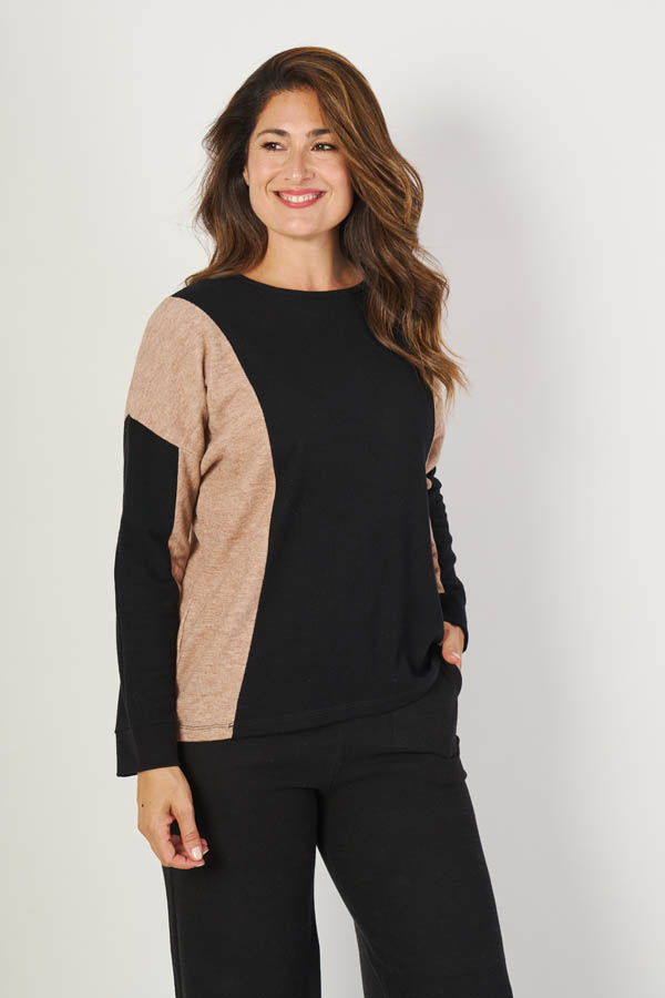 Remera Melanie , moderna y versátil. Escote base y manga dolman con recortes combinados que le dan un toque de diseño y movimiento. Confeccionada en lanilla angora lisa, suave y abrigada, ideal para un look cómodo pero con estilo.