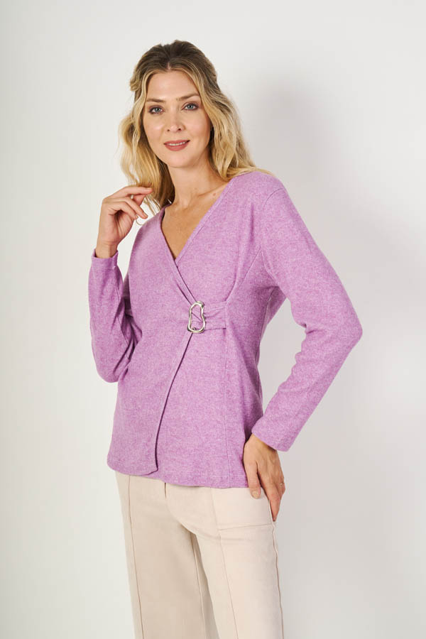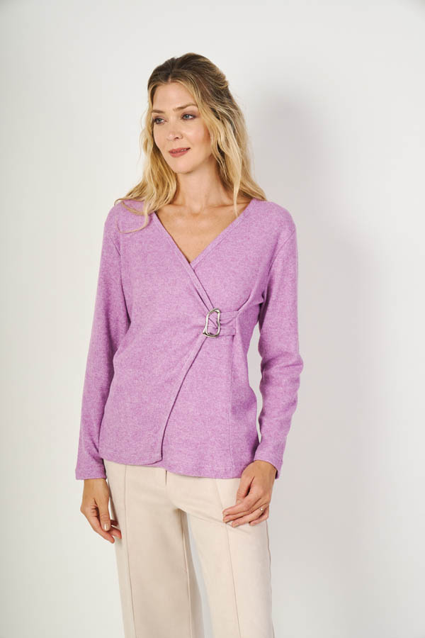 Remera Annabella , elegante y con detalle protagonista. Escote cruzado con hebilla y manga larga que realzan la silueta con un toque moderno. Confeccionada en lanilla lisa, suave y abrigada, ideal para un look sofisticado y cómodo a la vez.