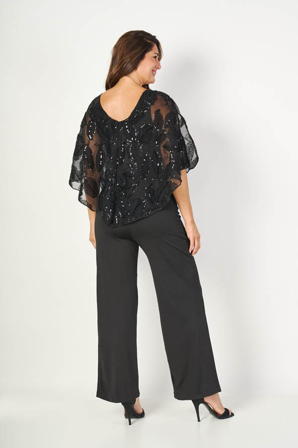 Mono Solange, elegante y con brillo sutil. Escote en V y diseño sin mangas, con capita de tul bordada con hojas y lentejuelas que aporta movimiento y un toque sofisticado, con terminación redondeada. Confeccionado en microfibra lisa, suave y cómoda, ideal para un look de noche delicado y glam.