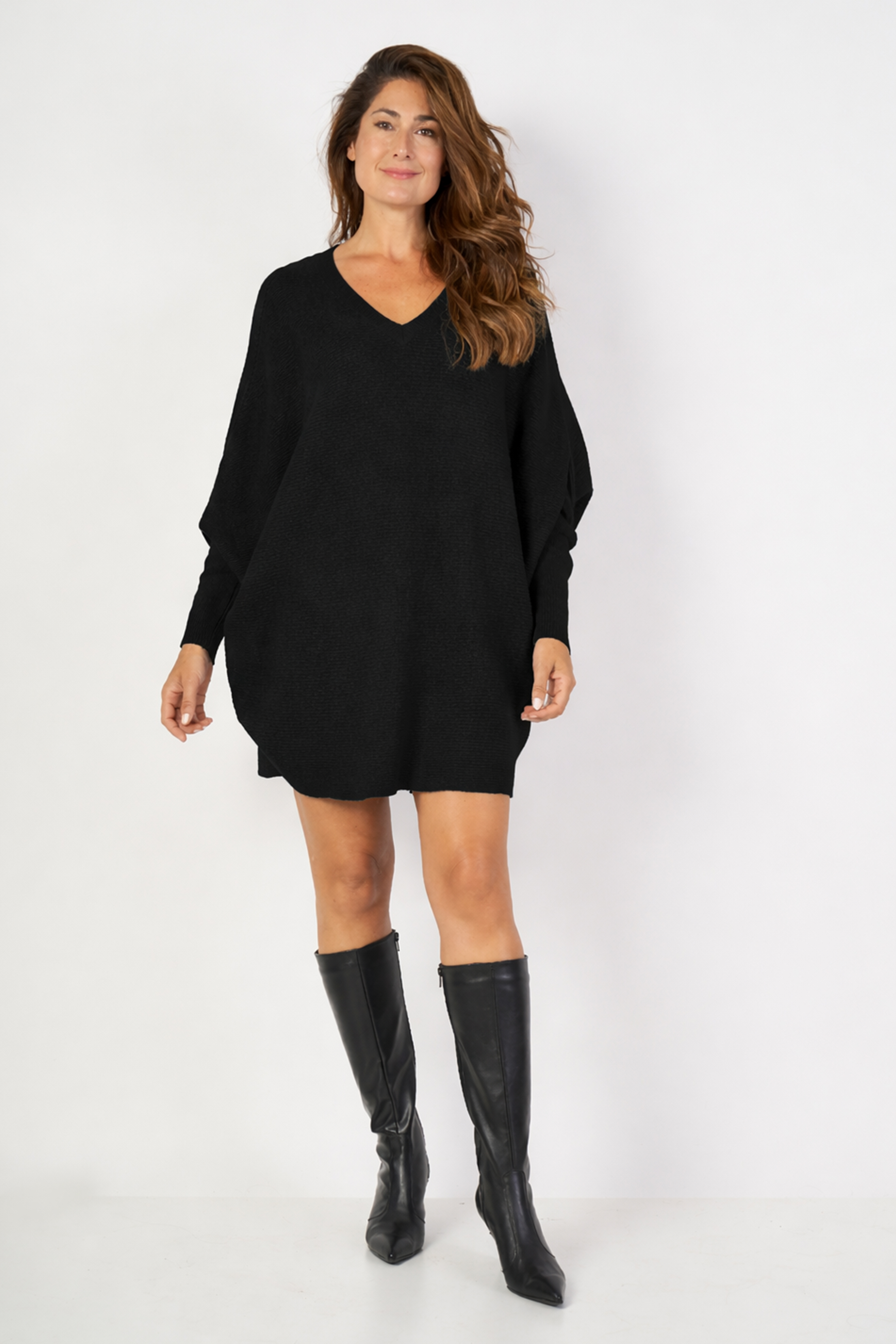 Sweater Oversize Paris ,relajado y con onda. Escote en V y manga dolman con puño, con detalle de relieve acanalado horizontal en el frente que suma textura y estilo. Confeccionado en cashmere liso, suave y abrigado, ideal para un look comfy pero canchero.