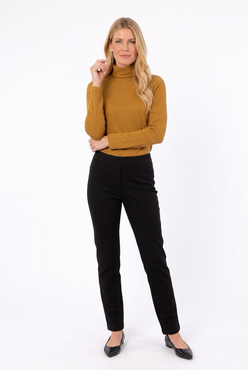 Fuseaux Leonor, cómodo y versátil. Cintura con elástico y detalle de bolsillos laterales simulados con pespuntes que suman diseño. Confeccionado en punto Roma liso, con buen calce y elasticidad, ideal para un look urbano y confortable.