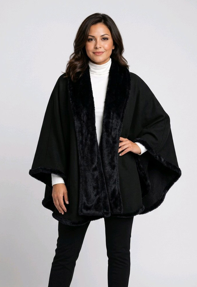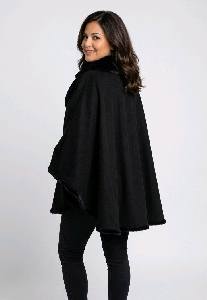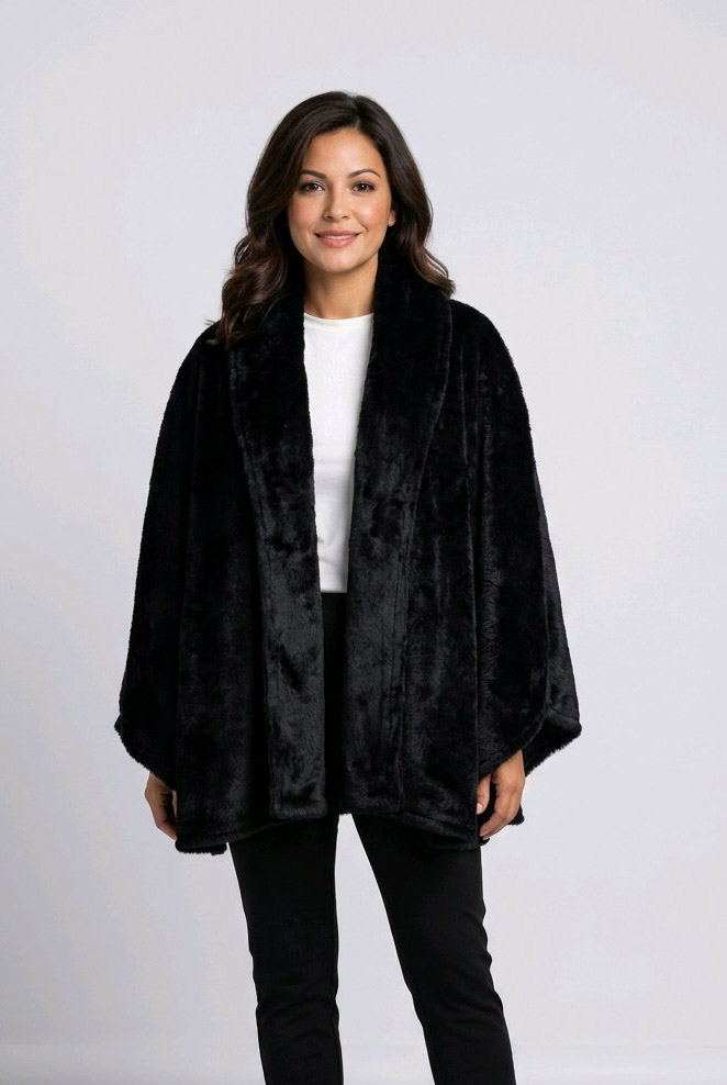 Capa Constancia , versátil y elegante. Diseño reversible con cuello smoking que permite dos estilos en una sola prenda. Confeccionada en dralon con piel lisa, suave y abrigada, ideal para sumar un toque sofisticado a tus looks de invierno.