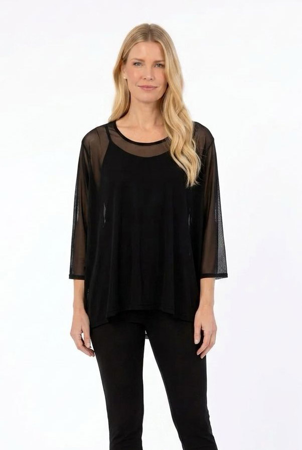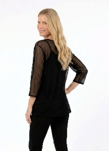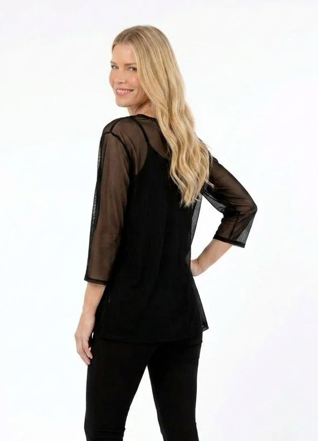 Remera Alicia, liviana y con movimiento. Diseño símil capa con escote base y terminación irregular que aporta fluidez y estilo. Confeccionada en tull, delicado, ideal para sumar un toque moderno y sofisticado a tus looks.