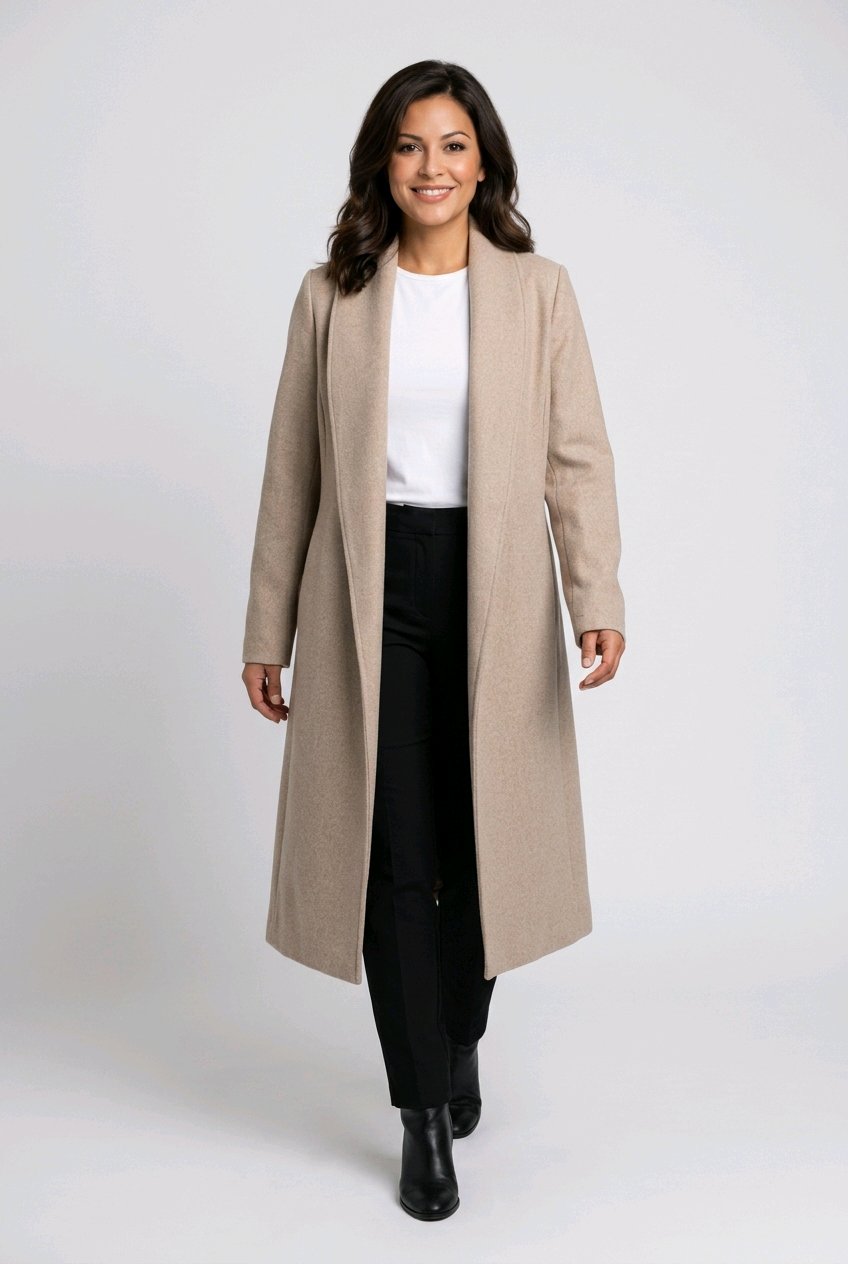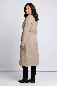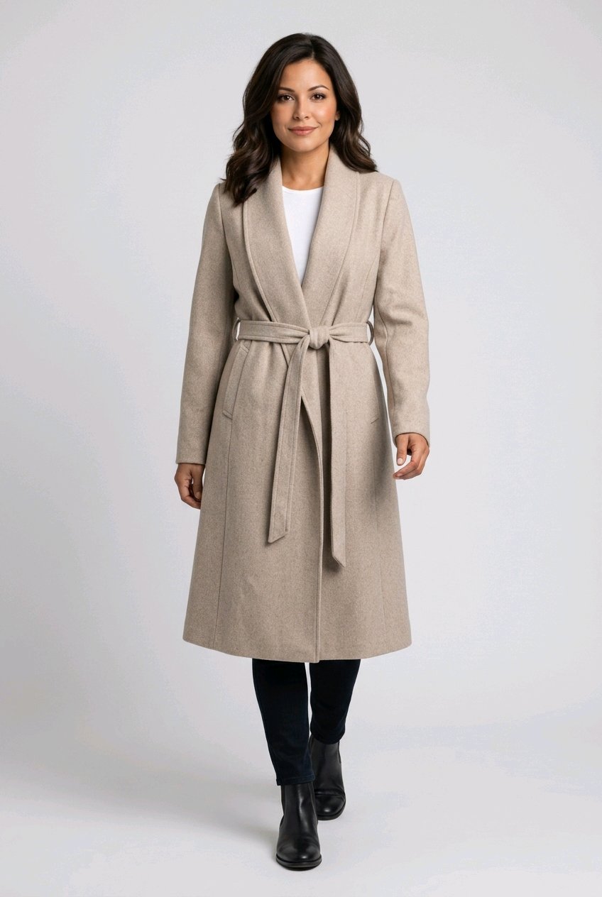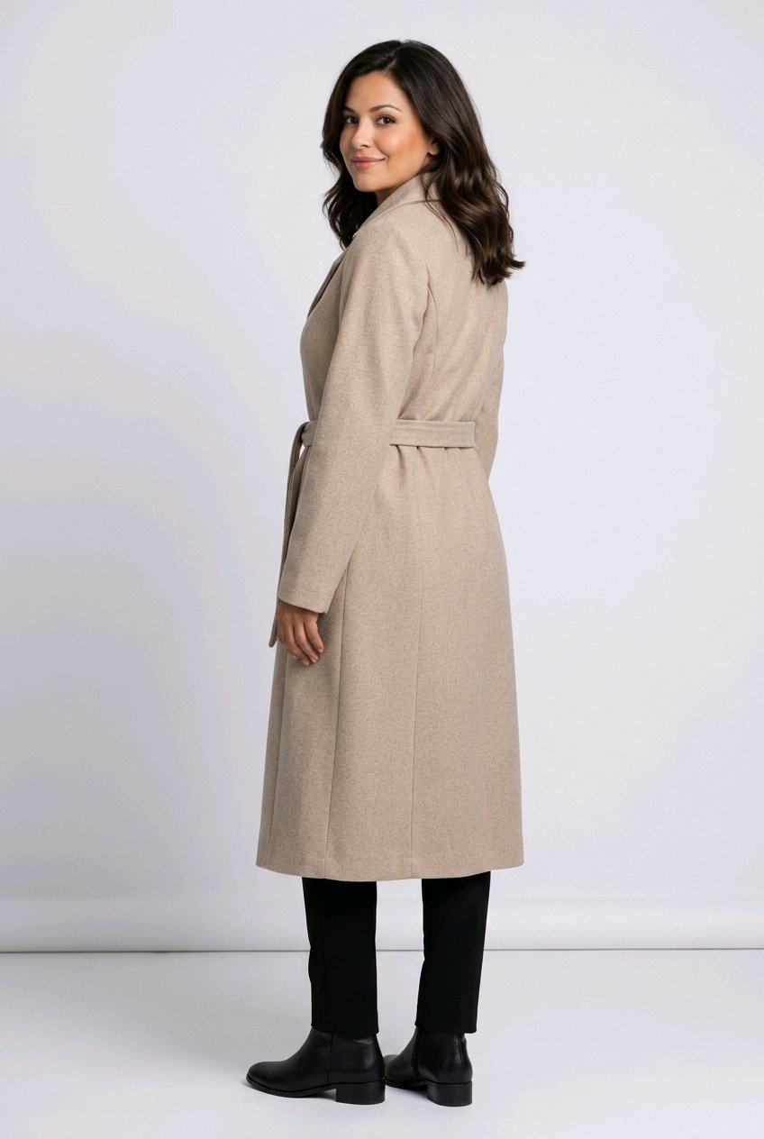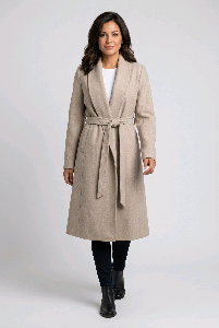 Tapado Lilian , elegante y sofisticado. Cuello smoking cruzado con lazo que marca la silueta y aporta un toque femenino. Confeccionado en paño bifaz elastizado liso, abrigado y con buena estructura, ideal para un look invernal con estilo.